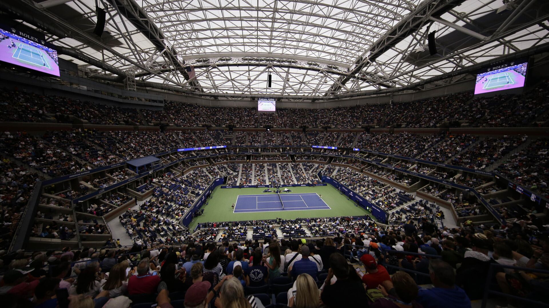 A fourth round match is played under the roof of Arthur Ashe Stadium during the U.S. Open tennis championships Monday, Sept. 2, 2019, in New York. Play at the 2023 U.S. Open begins at Flushing Meadows on Aug. 28, with Iga Swiatek and Carlos Alcaraz as the defending champions.