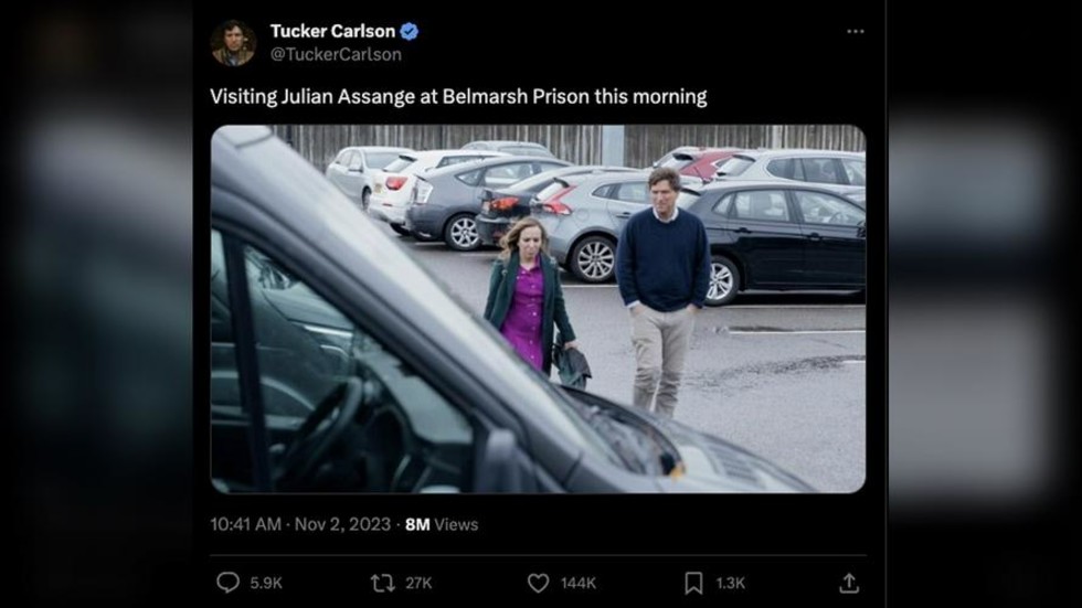 Former Fox News host Tucker Carlson visited Wikileaks founder Julian Assange at London’s high security Belmarsh Prison on Thursday, the former Fox News host has revealed in a  post on X (formerly Twitter) later that day.