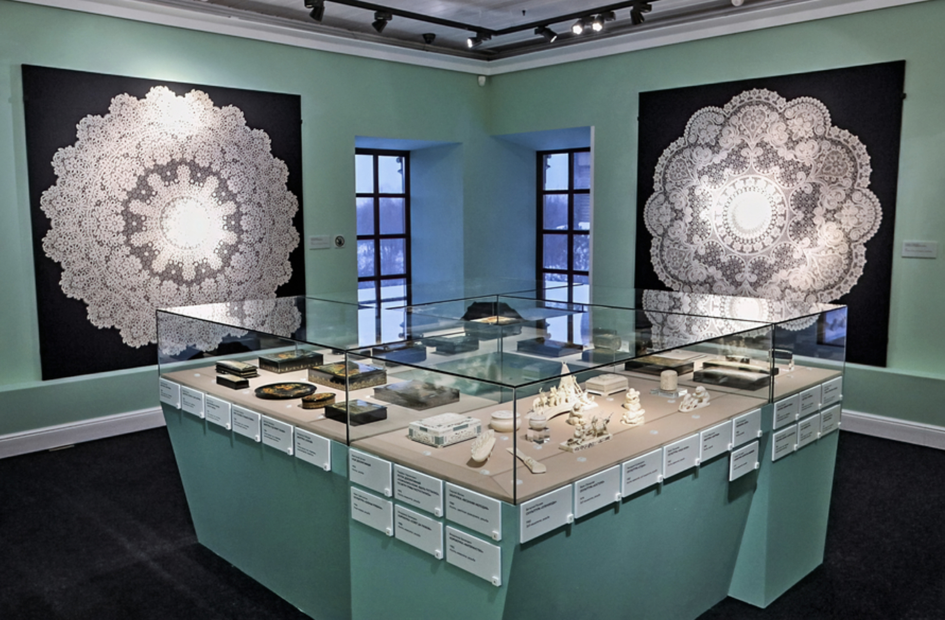 Например, можно увидеть огромные кружевные снежинки, сплетённые вологодскими мастерами, шкатулки с сюжетами зимних сказок, а также фигурки, вырезанные из кости.