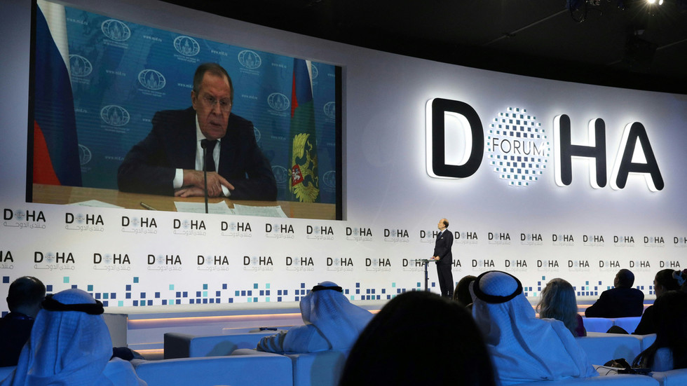 The formation of a multipolar world is the objective course of history, the Russian foreign minister said Russia’s foreign minister, Sergey Lavrov, delivers a video address to the Doha Forum. © AFP / Salim Matramkot The 500-year-long dominance of the West is coming to an end, being replaced by “a new polycentric world,” Russia’s foreign minister, Sergey Lavrov, said Sunday in a video address to the Doha Forum. The minister expressed regret that certain “circumstances” prevented him from coming to the Qatari capital in person and hearing the discussions at the annual high-profile event. “But I assume that you were discussing the multipolar world, which is emerging after 500 years of domination of what we call the ‘collective West,’” Lavrov said. This hegemony of the US and its allies had been “based on a diverse history, including ruthless exploitation of peoples and territories of other countries,” he said. According to the minister, the West suggested that it could use the model of globalization, which it had been building for centuries, to maintain its dominance. “However, other countries, using exactly the principles and instruments of the Western globalization, managed to beat the West on its own turf, building the economies on the basis of national sovereignty, on the basis of balance of interests with other countries.” New centers of economic growth and political influence have been emerging, “changing the balance of power in the world, and not to the West’s liking,” he said. Read more “In order to suppress this kind of development,” the US and its allies have in recent years “sacrificed” globalization in favor of the so-called ‘rules-based world order,’ Lavrov continued. “The rules were never published, were never even announced by anyone to anyone, and they are being applied depending on what exactly the West needs at a particular moment of modern history,” he added. The FM said that such an approach is most seen “in various conflicts, which the West ignites all over the world,” including the one in Ukraine. “Everything goes to keep the hegemony. Intervention in domestic affairs, sanctions against all the principles of competition, regime change, and of course direct military interventions, like we have seen in Yugoslavia, Iraq, Libya, Syria, and elsewhere.” “Is there a single place where the US intervened with military force, where life has become better? I think you know the answer,” Lavrov told the forum participants. According to the diplomat, new formats like BRICS, the Shanghai Cooperation Organization, ASEAN, African Union, and others will become “the bricks of the new polycentric world.” READ MORE: Middle East royal calls for end to Western ‘dominance’ It should be recognized, including by those in the West, that “the objective course of history… is the evolution of a multipolar world,” Lavrov insisted.