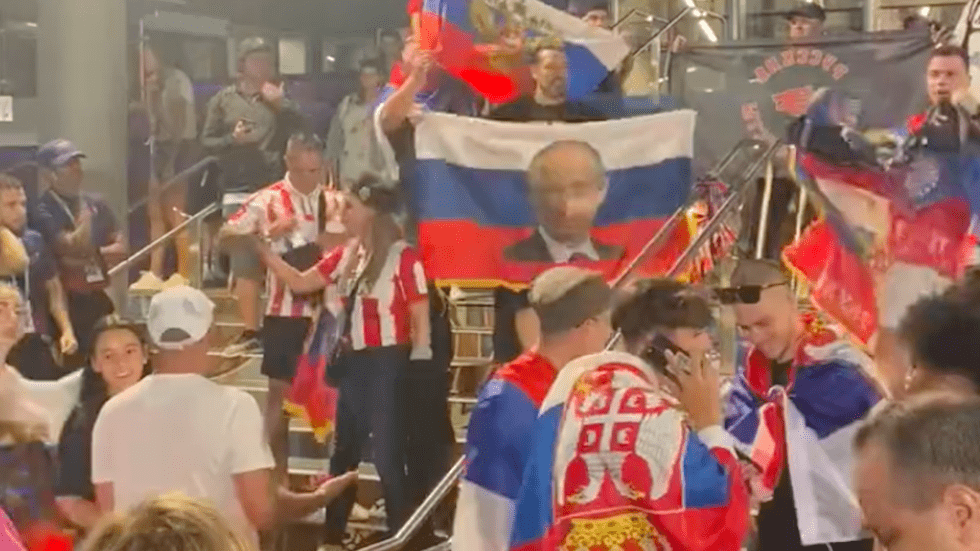 A group of people congregated outside the Rod Laver Arena in Melbourne after Djokovic’s comprehensive three-set win, with chants of “Serbia, Russia” heard from the group, while a man wearing a ‘Z’ symbol on his T-shirt was also seen to be displaying the Russian flag.