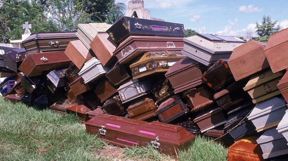 DNA analysis to identify the badly deteriorated corpses could take several months, authorities said File photo of unused coffins © Getty Images / Robert Nickelsberg/Getty Images The badly decayed bodies of at least 189 people have been removed from a Colorado funeral home after it was discovered they were being improperly stored, officials said on Tuesday, revising up previous estimates from a fortnight ago. “Teams removed at least 189 individuals and transported them to the El Paso County Coroner’s Office,” Colorado’s Bureau of Investigation said on Tuesday, adding that the process had been completed on October 13. “The total number of decedents could change as the identification and investigative processes continue.” Previous estimates had suggested that there were 115 corpses discovered at the scene. The bodies are in such an advanced state of decomposition that DNA analysis will be required to identify many of them – a process that might take several months, authorities said. The remains of the deceased individuals were discovered by authorities who responded to a report of a foul odor emanating from the Return to Nature funeral home in a poorly-cared-for building in the small town of Penrose, Colorado. Read more The discovery of the human remains came after the owners of the funeral home had failed to make tax payments in recent months and got evicted from one of their properties. They were also sued for unpaid bills by a crematory service that had stopped doing business with the funeral home nearly a year ago, reports say. “Without providing too much detail to avoid further victimizing these families, the area of the funeral home where the bodies were improperly stored was horrific,” Allen Cooper, Sheriff of Fremont County, said earlier this month. Cooper added that the scene discovered by emergency workers when authorities arrived was so overwhelming that one paramedic developed a rash and required medical treatment. The website for the funeral home says that it offers a so-called ‘Green Burial’ service, which it says is a way to care for a deceased loved one with minimal environmental impact – and without the use of embalming chemicals. State law requires that any body not buried within 24 hours must be properly refrigerated. The owners of the funeral home have not publicly commented on the situation.