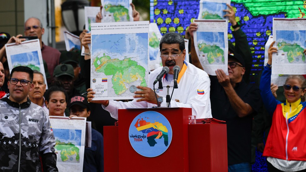 The PM of Saint Vincent and the Grenadines says the presidents of Venezuela and Guyana have agreed to meet on December 14 Venezuelan President Nicolas Maduro shows a national map during a march in favor of the Venezuelan position over the disputed territory of Essequibo with the Cooperative Republic of Guyana, in Caracas, Venezuela on December 8, 2023. © Mariela Lopez/Anadolu via Getty Images The presidents of Venezuela and Guyana – Nicolas Maduro and Mohamed Irfaan Ali, respectively – will sit down next week to discuss a long-standing territorial dispute that has recently intensified, the prime minister of Saint Vincent and the Grenadines has revealed. While Caracas has laid claim to the oil-rich Esequibo region since the late 19th century, President Maduro recently took steps toward gaining actual control over the area, which covers some 160,000 square kilometers. Earlier this week, the Spanish daily El Pais reported that the Venezuelan government had deployed troops to the border with Guyana. Saint Vincent and the Grenadines PM Ralph Gonsalves, who also serves as president pro tempore of the Community of Latin American and Caribbean States (CELAC), broke the news after speaking with Maduro on Saturday, saying the negotiations would take place on Thursday. The Venezuelan government has confirmed the planned talks, saying they hoped to “preserve our aspiration to maintain Latin America and the Caribbean as a zone of peace.” The Office of the President of Guyana, for its part, stressed that “Guyana’s land boundary is not up for discussion.” Also on Saturday, Brazilian President Luiz Inacio Lula da Silva spoke with Maduro, calling for dialogue and warning against unilateral measures that could escalate the situation. The Brazilian head of state has also been invited to take part in Thursday’s talks as an observer. Speaking on Tuesday, the Venezuelan president said Caracas wanted the “peaceful rescue of the Guayana Esequiba,” which “has been de facto occupied by the British Empire and its heirs and they have destroyed the area.” Maduro also unveiled a new map of Venezuela that incorporates the disputed territory, and appointed a new governor to the region. Guyanese President Irfaan Ali, in turn, gave a televised address to the nation, accusing Venezuela of attempting to annex more than two thirds of his country. “This is a direct threat to Guyana’s territorial integrity, sovereignty, and political independence, and a violation of fundamental principles of international law,” the leader stressed. “The Guyana Defense Force is on high alert… Venezuela has clearly declared itself an outlaw nation,” Ali added. The recent escalation followed Sunday’s referendum, in which 10.4 million Venezuelan voters backed Caracas’ claim to Guayana Esequiba. The territorial dispute stems from the US’ decision in 1899 to assign the territory to what was then British Guiana – a move Venezuela never accepted as legitimate.