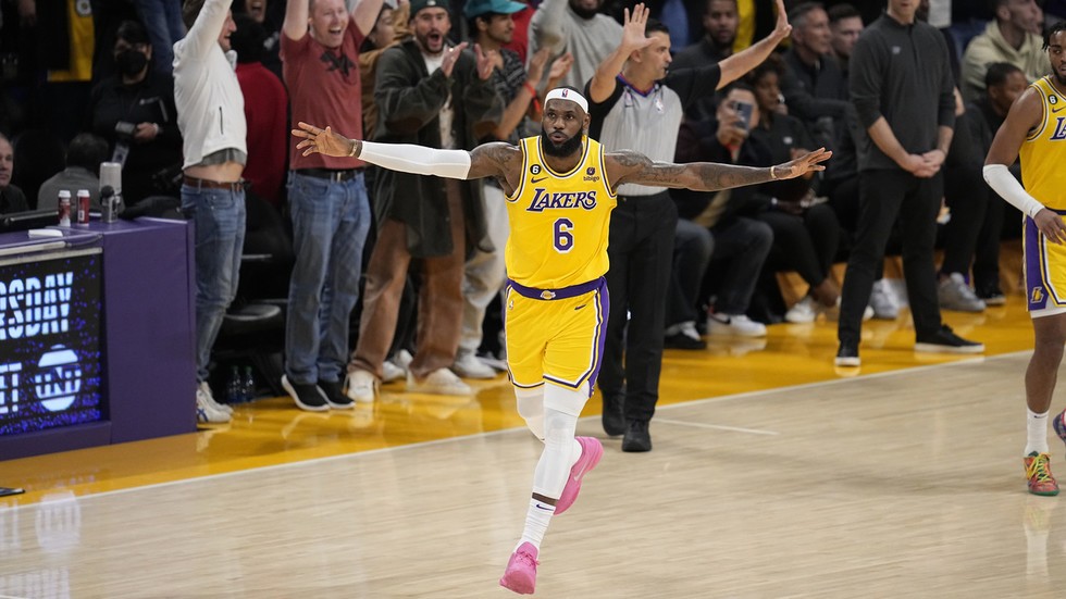 The LA Lakers star surpassed the milestone of 38,387 points against the Oklahoma City Thunder on Tuesday night Los Angeles Lakers forward LeBron James celebrates after scoring to pass Kareem Abdul-Jabbar to become the NBA’s all-time leading scorer during the second half of an NBA basketball game against the Oklahoma City Thunder Tuesday, Feb. 7, 2023, in Los Angeles. © AP Photo/Mark J. Terrill LeBron James officially became the NBA’s all-time record points scorer as he surpassed Kareem Abdul-Jabbar during the LA Lakers’ game against the Oklahoma City Thunder on Tuesday night. The action at Crypto.com Arena in Los Angeles was paused after James scored the 38,388th point of his career with a fadeaway jump shot in the third quarter. 38 years old.39 year-old record.38 points tonight…38,390 and counting. #ScoringKingpic.twitter.com/HBfuICH0dX — NBA (@NBA) February 8, 2023 James moved beyond the previous record of 38,387 points set by former Lakers star Abdul-Jabbar, who was on hand to mark the occasion. Both he and NBA commissioner Adam Silver walked onto the court to congratulate the 38-year-old James. “To be able to be in the presence of such a legend as great as Kareem, it’s very humbling. Please give a standing ovation to the Captain, please,” James said as he paid tribute to Abdul-Jabbar. James thanked his family and fans for allowing him to “be a part of something I’ve always dreamed about.” Later in a press conference, the Lakers star said he had “kind of teared up a little bit” when he scored the record-breaking shot, which comes in his 20th season in the NBA. LeBron on the emotions of his record-breaking night. #ScoringKing Hear more from him and the Lakers:? https://t.co/enwi9jW91Opic.twitter.com/X84g2n2zYk — NBA (@NBA) February 8, 2023 While it took Abdul-Jabbar 1,560 games to set his record back in April 1984, James has surpassed that milestone in 1,410 appearances. James attracted significant media attention while still in high school, and scored his first points in the NBA at the age of 18. He has since gone on to win four NBA Championships – two with the Miami Heat, and one apiece with the Cleveland Cavaliers and the Lakers. Griner prisoner swap ‘great day’ for US, says LeBron James Speaking on his plans for the future, James expressed hope that he would be able to play alongside his 18-year-old son, Bronny, who is set to be eligible for the NBA draft in 2024. Despite James enjoying a record-breaking night as he ended with 38 points, seven rebounds, and three assists, the Lakers went on to lose 130-133 to Oklahoma.