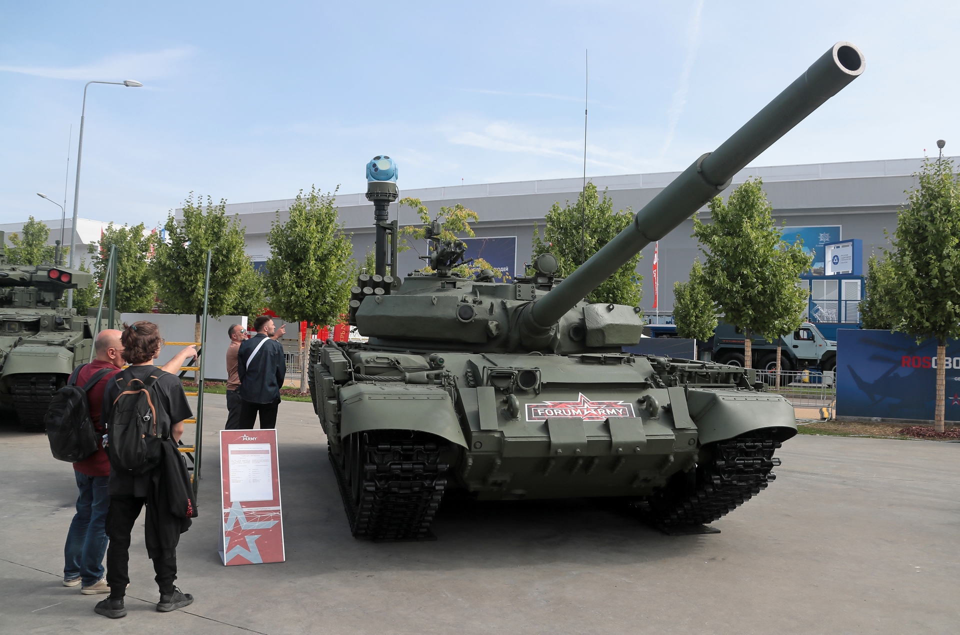 Улучшенная версия Т-62М, которая используется в зоне СВО, была дважды продемонстрирована на международном военно-техническом форуме «Армия» в 2022 и 2023 годах. Кроме того, в прошлом году обновлённая машина была представлена на стенде Главного автобронетанкового управления (ГАБТУ) Минобороны РФ. Образец был оборудован многоспектральной гиростабилизированной оптико-электронной системой (МГОЭС), смонтированной на башне танка с помощью мачты.