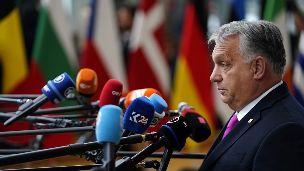 FILE PHOTO: Hungary’s Prime Minister Viktor Orban talks with media at EU Leaders Summit on October 26, 2023 in Brussels, Belgium. © Pier Marco Tacca/Getty Images