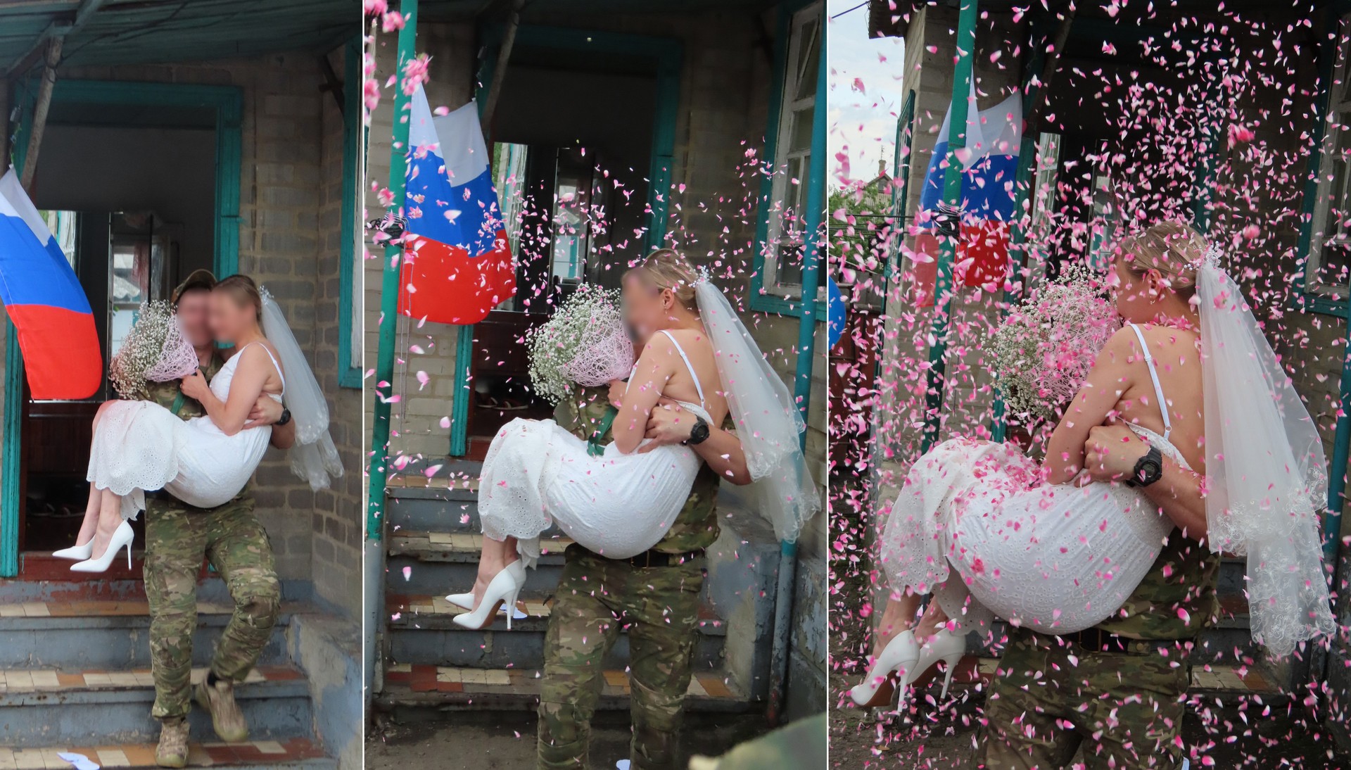 Изначально играть свадьбу на передовой влюблённые не планировали. «Мы не хотели праздник устраивать, но мои девочки настояли. Где-то купили фату, сказали: «Алёнка, сегодня только ты должна быть красивой». Я надела белый сарафан, а все остальные были одеты по форме. Из ЗАГСа Лёша меня выносил на руках, все кричали, бросали конфетти. В лесу рядом с домом натянули маскировочные сети, повесили ковёр, украсили немного и устроили простой деревенский праздник. Вспоминаем всё это до сих пор. Мы снова смогли почувствовать радость и на время забыть о каких-то плохих моментах».