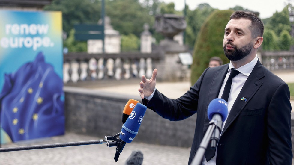 FILE PHOTO: Leader of the Servant of the People’s Political Party of Ukraine David Arakhamia talks to the media as he arrives for the Renew Europe Leader’s pre-summit meeting, in Brussels, on June 29, 2023. ©  Kenzo TRIBOUILLARD / AFP