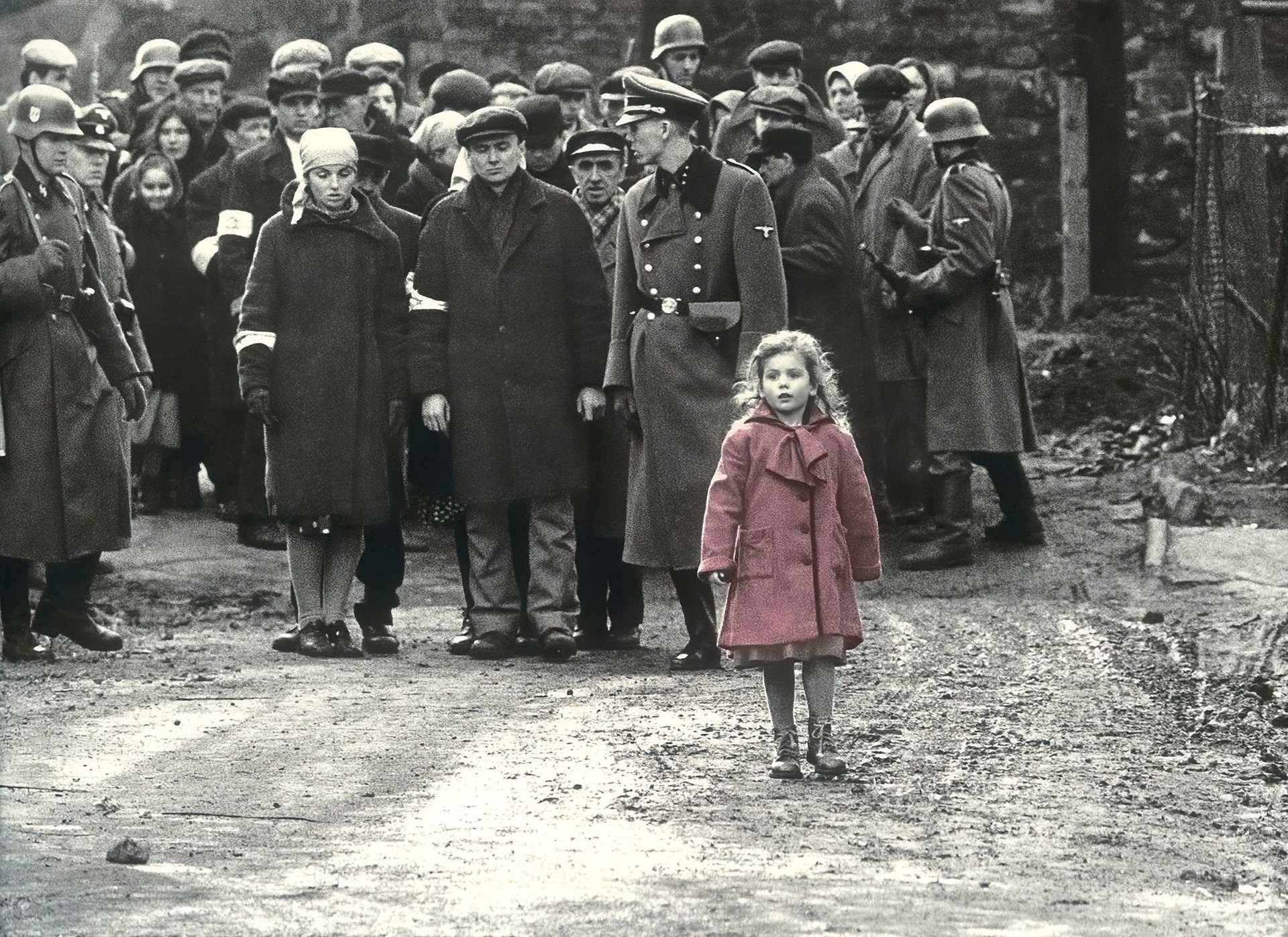 На протяжении всей монохромной картины зрители видят цвет только один раз — в сцене, когда появляется маленькая девочка в красном пальто. Именно в этом моменте происходит трансформация героя.