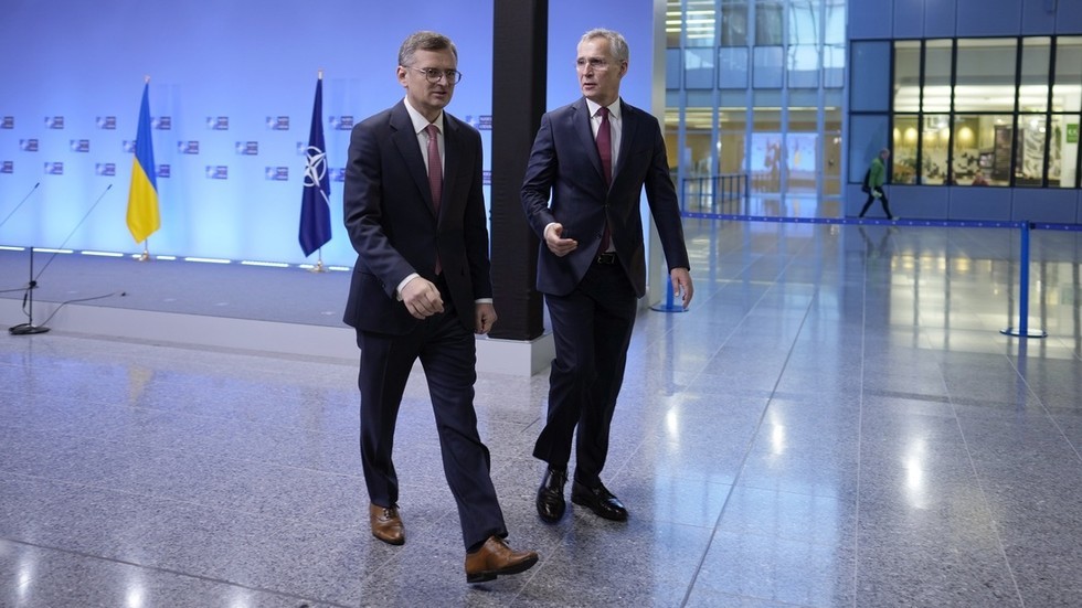 Ceding territory to Russia in exchange for membership in the US-led bloc is not an option, Dmitry Kuleba has said Ukrainian Foreign Minister Dmitry Kuleba (L) and NATO Secretary General Jens Stoltenberg ahead of the NATO-Ukraine Council meeting. © AP Photo / Virginia Mayo The idea that Ukraine could cede territories that it lost to Russia in exchange for NATO membership remains unacceptable, Ukrainian Foreign Minister Dmitry Kuleba told journalists on the sidelines of a NATO meeting in Brussels on Wednesday. The idea has been floated by former senior NATO officials, including ex-Secretary General Anders Fogh Rasmussen and ex-Supreme Allied Commander Europe James Stavridis. Kuleba blasted the proposal ahead of a NATO-Ukraine Council of foreign ministers. Supporters of the plan should tell other nations to make similar concessions, “and if they do so, then I am ready to listen to their arguments,” he said. The minister also dismissed the notion that there was “fatigue” with the conflict in Western nations, insisting that a shortage of arms deliveries was not related to it. Read more Last week, the German tabloid Bild claimed that American and German officials wanted Kiev to compromise and hold peace talks with Moscow. As the biggest providers of aid to Ukraine, the two nations are restricting supplies of new weapons to a bare minimum necessary to avoid a full collapse of the Ukrainian army, the newspaper suggested. Kuleba was asked about the “elephant in the room” during a joint briefing with EU foreign affairs chief Josep Borrell in Brussels. He mused that “all the right elephants are on our side,” before stressing: “No, I don’t feel any pressure.” Discussing arms supplies at NATO HQ, the minister said he had “no reason” to believe that Western failure to deliver as much as Kiev expected was due to a “lack of political will.” “But I do have good reasons to believe that a lot of [technical work] needs to be done to deliver in this area,” he added. Read more Kuleba noted that out of the 1,000,000 artillery shells that the EU pledged to send to Ukraine in 2023, only some 300,000 have arrived. Kiev remained firm in its war goals, the minister said, vowing that “nothing will stop us.” He called sponsoring Ukraine instead of sending their own troops to fight Russia a “fair deal” for the West. “You give us all what we need, we do the fight. We are not asking you to sacrifice your lives,” he described the arrangement. Moscow has called the Ukraine conflict a US-led proxy war against Russia, in which the Ukrainian people are used as “cannon fodder.” The Russian Defense Ministry has estimated Ukrainian losses in its Western-backed counteroffensive this year at over 100,000 troops.