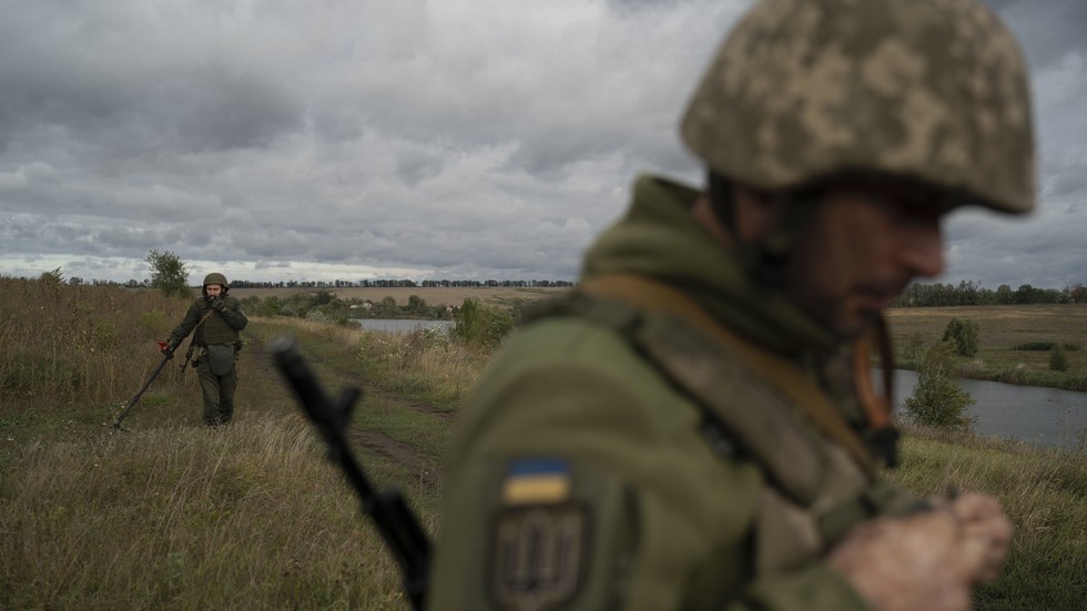 Ukrainian national guard servicemen check for unexploded devices during an operation inKharkov region, Ukraine, September 19, 2022 ©  AP / Leo Correa