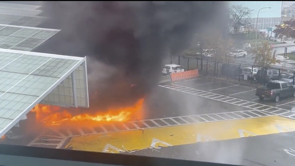 Footage shows the vehicle speeding up and going airborne before crashing into checkpoint © Twitter / © Yanky_Pollak Surveillance cameras at a US-Canada border crossing captured the moment a speeding vehicle exploded at a checkpoint on Wednesday. The incident remains under investigation. CCTV footage posted to social media shows an explosion immediately outside a customs booth, though the car itself does not appear in that clip. Other footage described by news outlets including ABC and Fox News reportedly shows the vehicle stopping at an initial security checkpoint on the US side of Rainbow Bridge, which spans the Niagara River gorge, where it was referred to another checkpoint for closer examination. The vehicle apparently sped up and crashed into the second checkpoint, where it exploded, according to another CCTV video. 🚨#BREAKING: New surveillance video shows the moment when the white vehicle went airborne and crashed at the Rainbow Bridge Crossing checkpoint before going up in flames near Niagara Falls pic.twitter.com/7I2JGM9aTw — R A W S A L E R T S (@rawsalerts) November 22, 2023 Photos and video purporting to depict the aftermath of the explosion show thick smoke billowing from the checkpoint area and twisted pieces of the vehicle strewn around the booths. The two people in the car are said to have died in the blast, while a border patrol agent was injured. Fox News, citing “high-level police sources,” originally described the explosion as an attempted terrorist attack, claiming the car was full of explosives and was targeting the Customs and Border Patrol building. However, that claim was later retracted. The FBI has only confirmed that the explosion took place, explaining in a statement posted on social media that the situation is “fluid” and that it is working with local and state law enforcement.