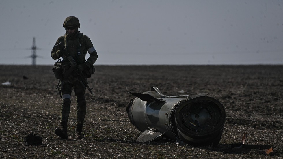A serviceman inspects a fragment of a Tochka-U missile with cluster warhead © Sputnik / Sputnik