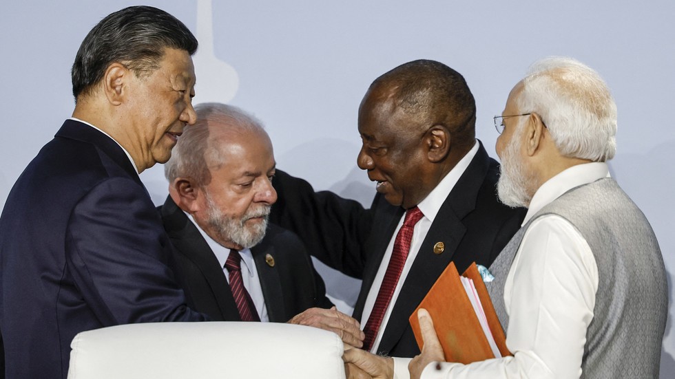 (From L to R) President of China Xi Jinping, President of Brazil Luiz Inacio Lula da Silva, South African President Cyril Ramaphosa and Prime Minister of India Narendra Modi at the 2023 BRICS Summit in Johannesburg on August 24, 2023 © Marco Longari / AFP